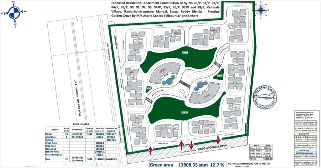 Prestige Golden Grove is a sprawling 28.7-acre premium township by the renowned Prestige Group, nestled in the rapidly developing Kollur corridor of West Hyderabad. With 10 architecturally distinctive towers housing over 5,000 thoughtfully designed apartments, this landmark project redefines what it means to live luxuriously. Surrounded by 3,500+ acres of lush greenery and strategically located near ORR Exit 2, Prestige Golden Grove offers the perfect balance of serene nature and urban connectivity — making it the most coveted address in West Hyderabad real estate.